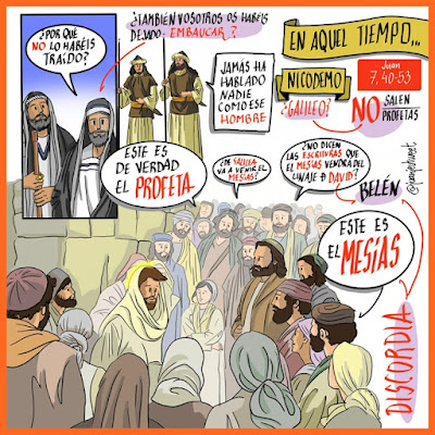 A pesar de todo lo que haces, de manifestar tu amor a los enfermos y necesitados, y de hablarme con sinceridad y claridad, como aquellos, yo, también, pido signos, a pesar de que a mí y a esta generación ya nos has dado el signo de Jonás, pues has estado tres días en el vientre, no del pez, sino en el de la tierra donde fuiste enterrado. Has muerto por amor a mí, pero has resucitado, Dios Padre ha avalado tu vida. Gracias, Señor, por tanto amor y por haberme mostrado el camino, tú eres el camino, para ser y vivir feliz. X todos y x todo y x tanto. Feliz lunes.