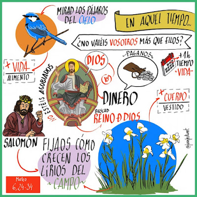 Pues, lo que has de hacer, Rafael, es ponerme a mí en el centro de tu corazón, es ser generoso y desprendido, es ser servicial para con todos y, sobre todo, amar, porque el seguimiento consiste en amar, como yo, que mirándote, te he amado a ti, “me has de preferir, dice el libro de la sabiduría, a cetros y tronos, y a toda la riqueza, porque todo el oro ante mí es un poco de arena y la plata es como el barro”. Pero, así y todo, has de darte cuenta, que la vida eterna es don, regalo, que no puedes, Rafael, adquirirla por ti mismo, que para ti es imposible, pero que para nuestro Padre Dios todo es posible. Gracias Señor, por amarme tanto, y haz que yo quiera, pero sabiendo que eres tú quien puede y eres tú, Señor, quien me hace ser y vivir feliz. X todos y x todo y x tanto. Feliz día del Señor.